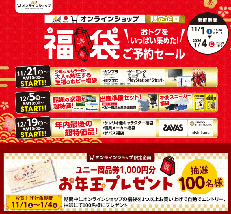 福袋の予約はアピタ・ピアゴの公式オンラインショップで行っており、