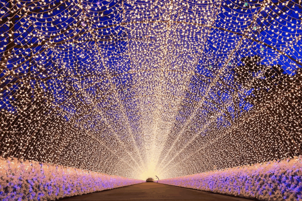 音楽に合わせて光が流れる演出は圧巻で、なばなの里ならではのスケール感を体感できます。